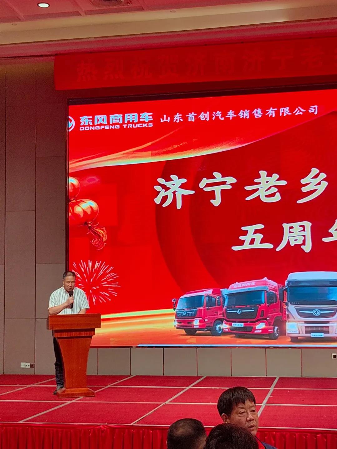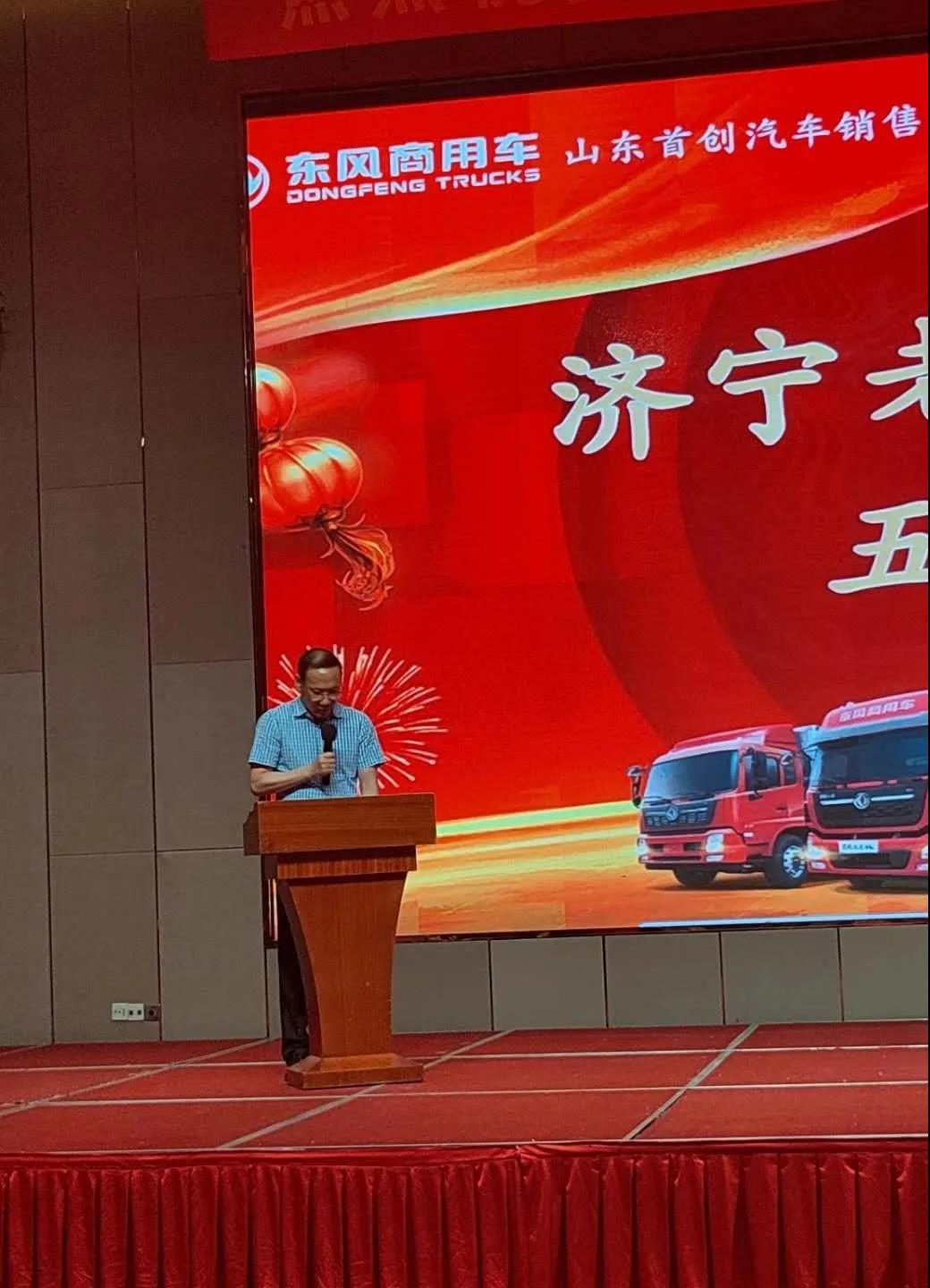 庆典上,济南市济宁商会副会长朱滨、东风商用车负责人分别上台讲话,表达了对协会工作的肯定和未来的美好祝福。