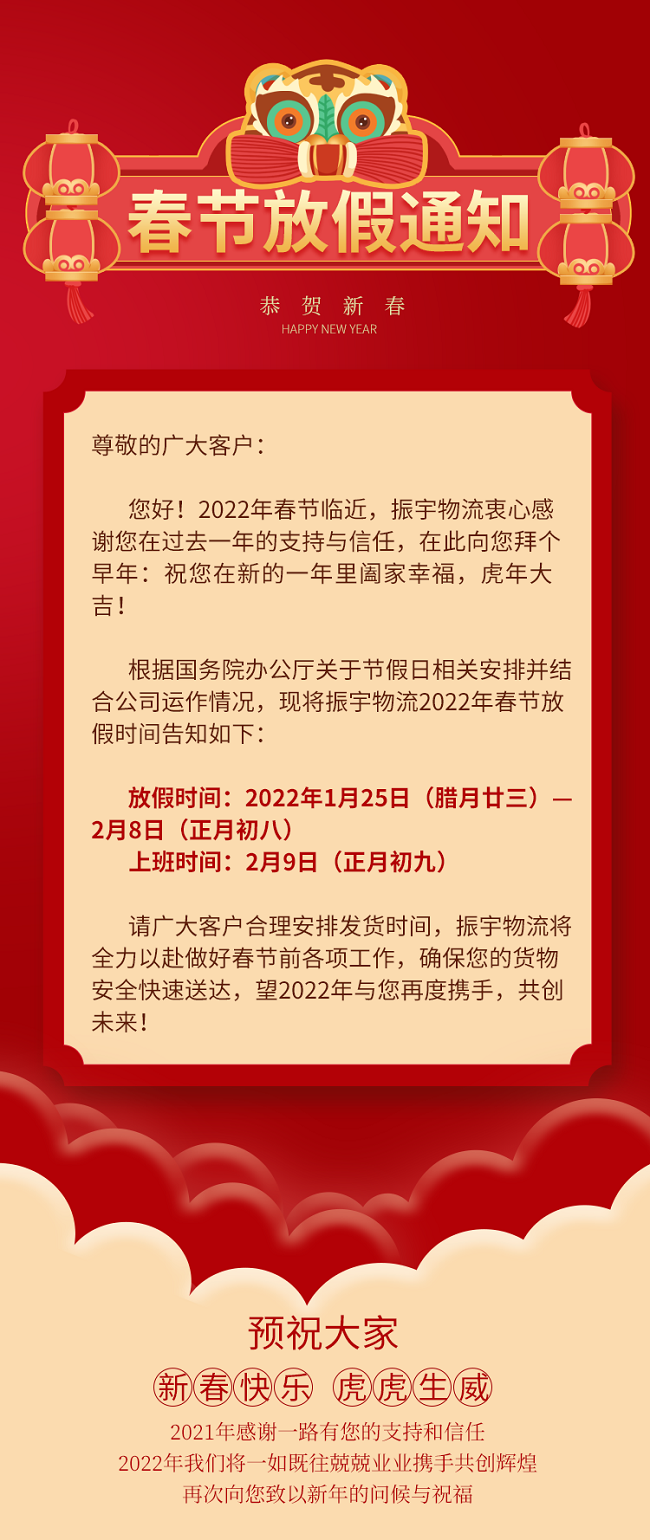 请广大客户合理安排发货时间,英国上市公司365将全力以赴做好春节前各项工作,确保您的货物安全快速送达,望2022年与您再度携手,共创未来!