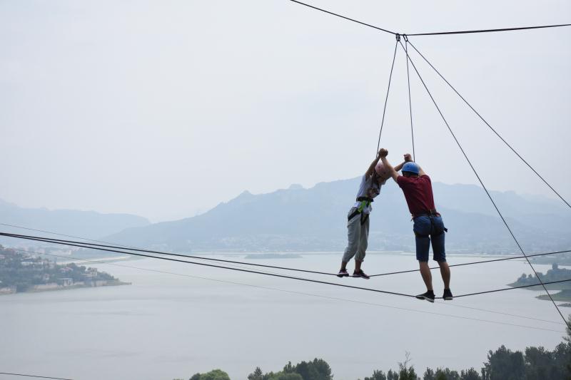 2人相依为命高空踩钢丝