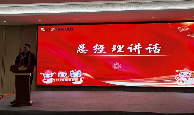 随后,总经理孙松讲话,他表示2024年虽然我们经历了市场的严峻挑战,但公司不畏艰难在深化内部改革、优化运营效率、提高服务质量等方面取得了显著的成果,2024年公司荣获国际道路运输TIR持证资质,标志着我们具备了将货运业务推向国际化的服务能力,荣获运联智库2024中国专线20强,中国零担收入50强、山东省物流行业信息化示范企业等多项荣誉称号。最后,他表示2025年公司将继续开拓创新,积极拥抱变革,助力公司实现稳步发展与持续增长。