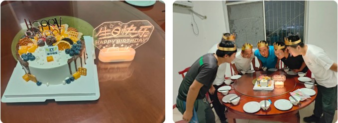 生日会上,公司为寿星们准备了丰盛的餐食和精致的蛋糕,大家围坐一堂,卸下工作的疲惫,畅聊生活趣事,分享彼此的故事与期待。在众人的掌声中,寿星们戴上生日帽,双手合十许下心愿,随后共同吹灭蜡烛,用笑容定格这充满意义的瞬间。