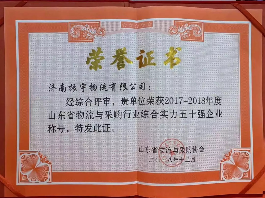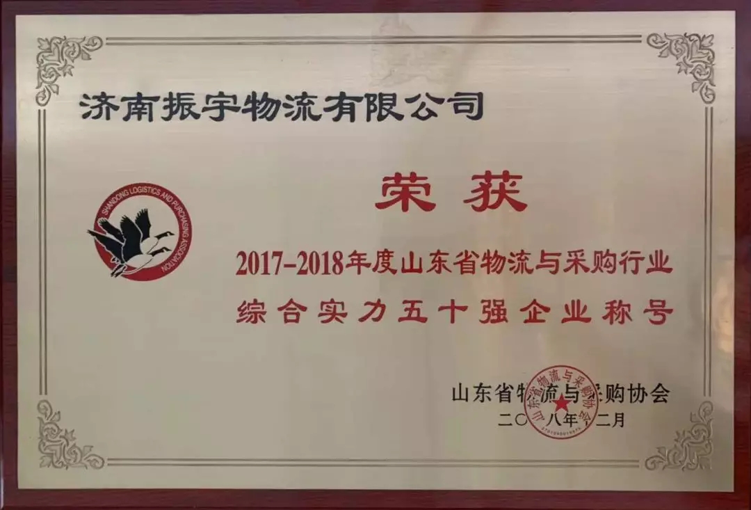 英国上市公司365经山东省物流与采购协会综合评审,荣获2017-2018年度山东省物流与采购行业综合实力五十强企业称号。