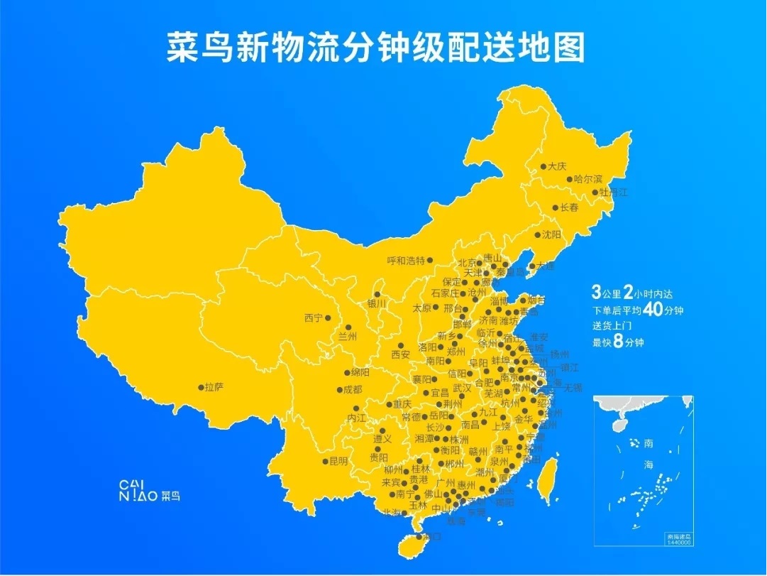 今年1月以来,菜鸟与天猫联手商家及物流合作伙伴,共同推出门店发货分钟级配送服务,“网上下单、楼下发货”,目前平均用时40分钟,最快仅8分钟就送货上门。