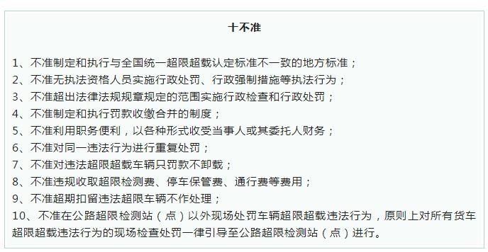 去年,交通部173号文件中还提出了“十不准”纪律: