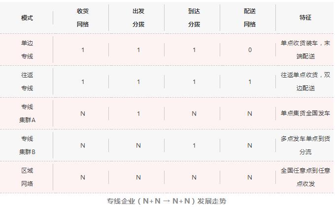 “专线——专线群——区域网络” 发展轨迹可用一个表格来表示。