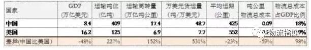 从这个指标来看,美国的物流成本远远高于中国。