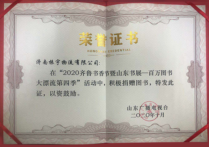 百万图书大漂流第四季荣誉证书